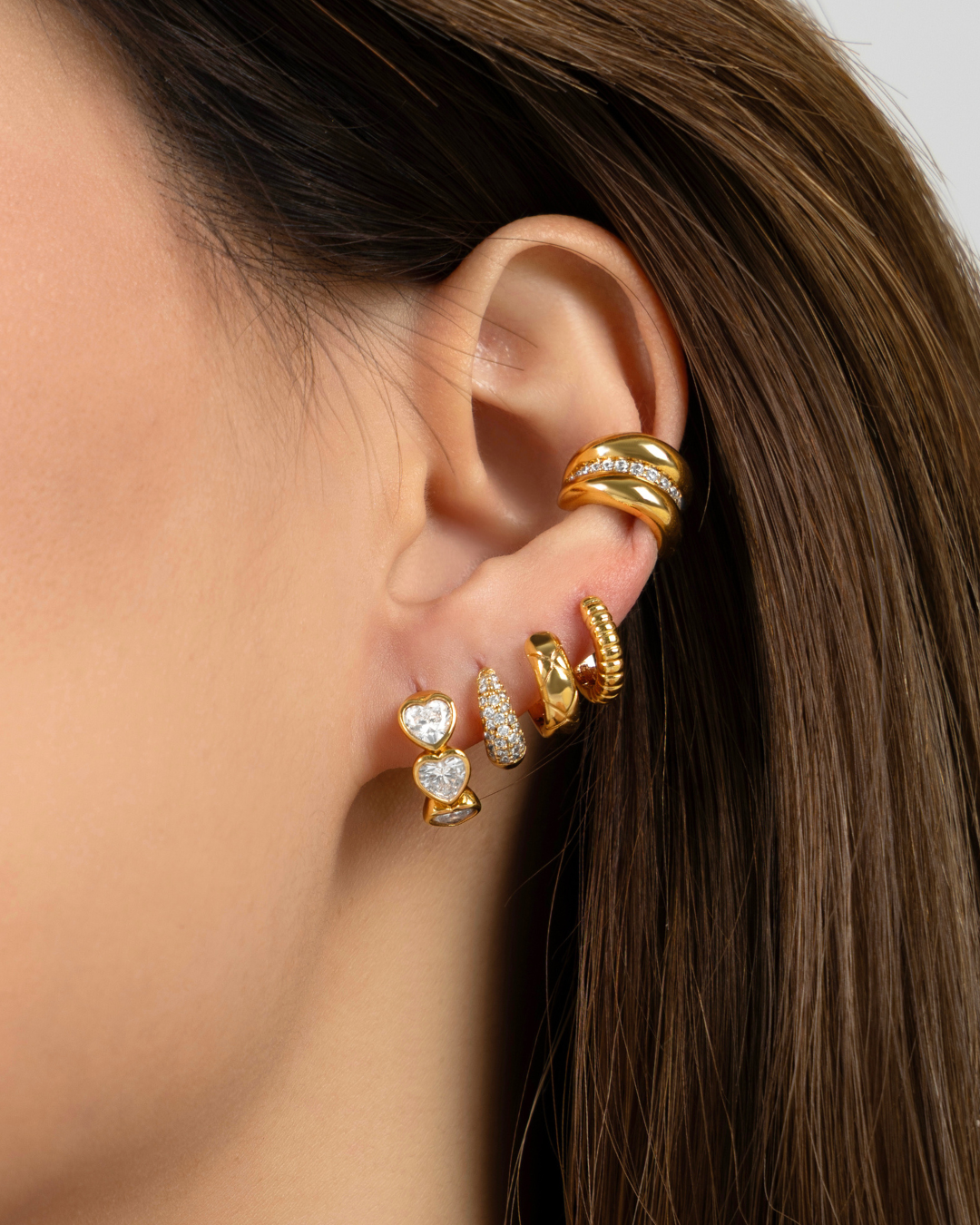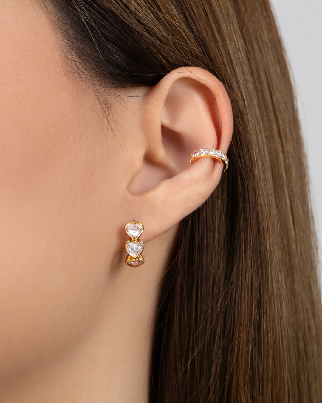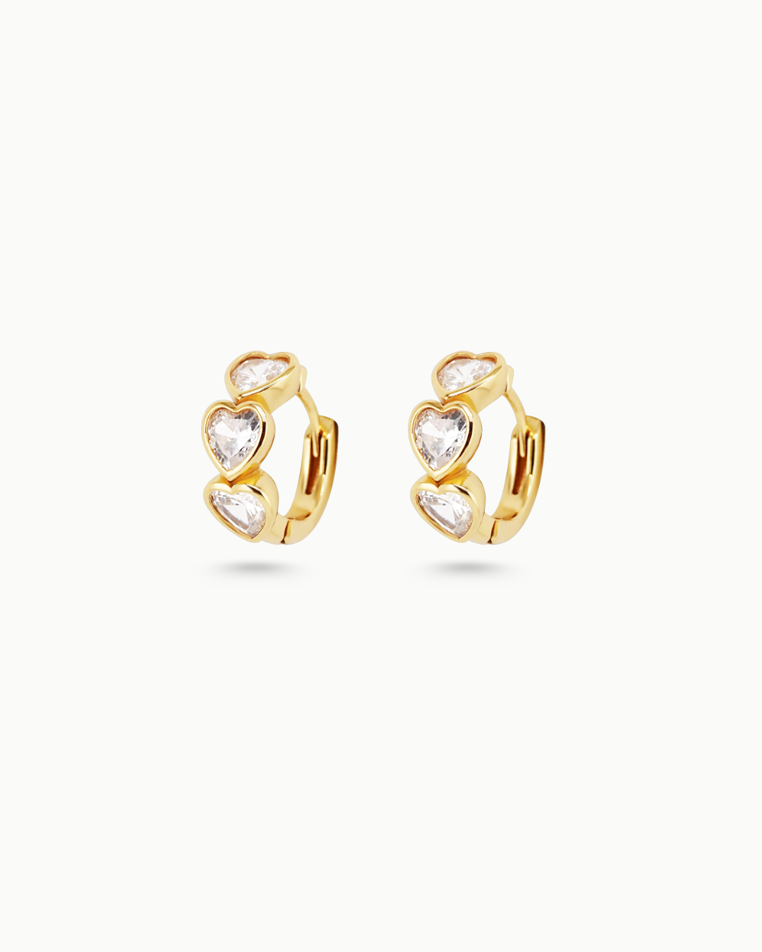 Luxe Valentina Heart Crystal Gold Huggie Hoop Earrings
