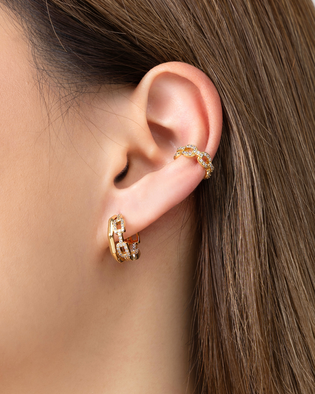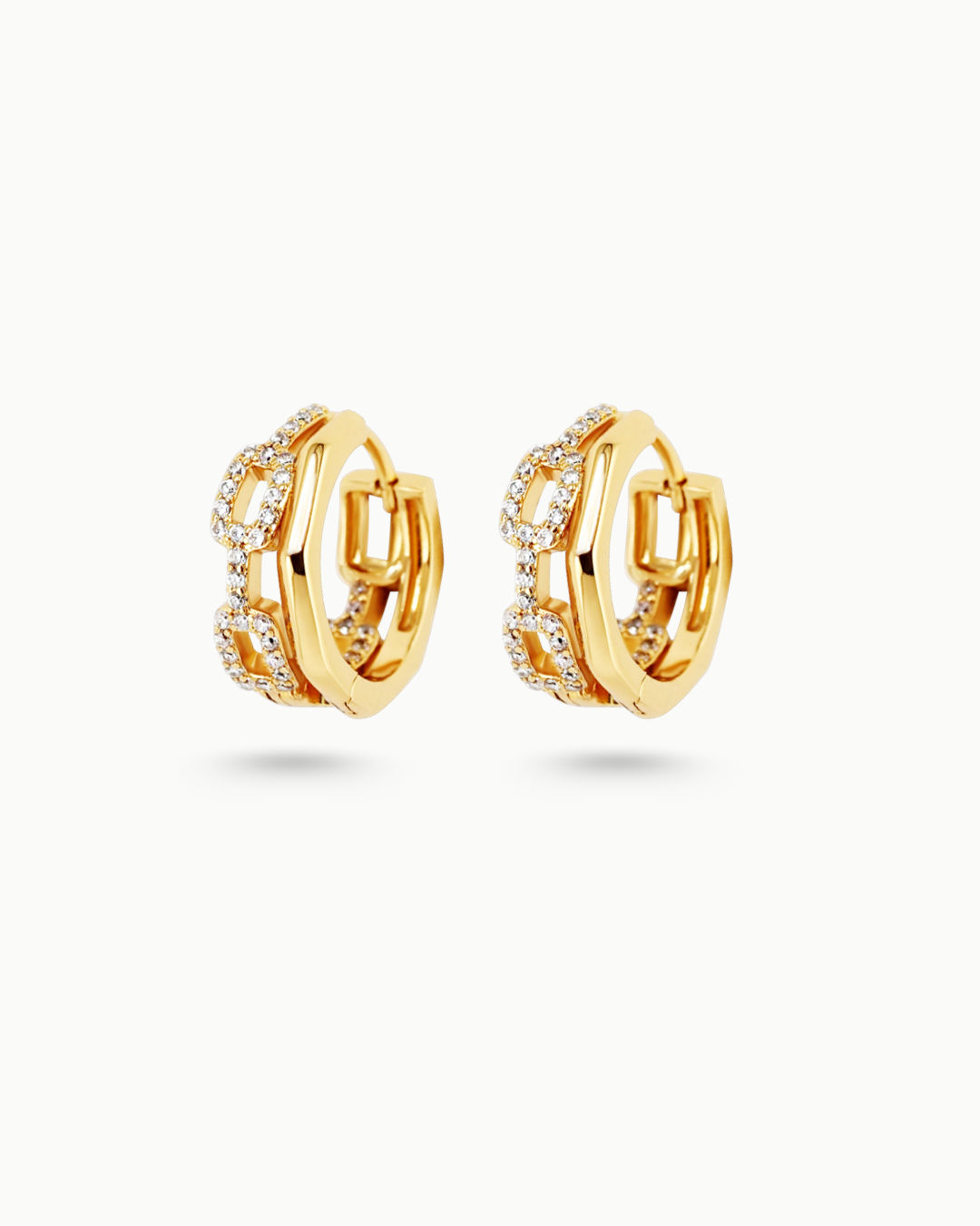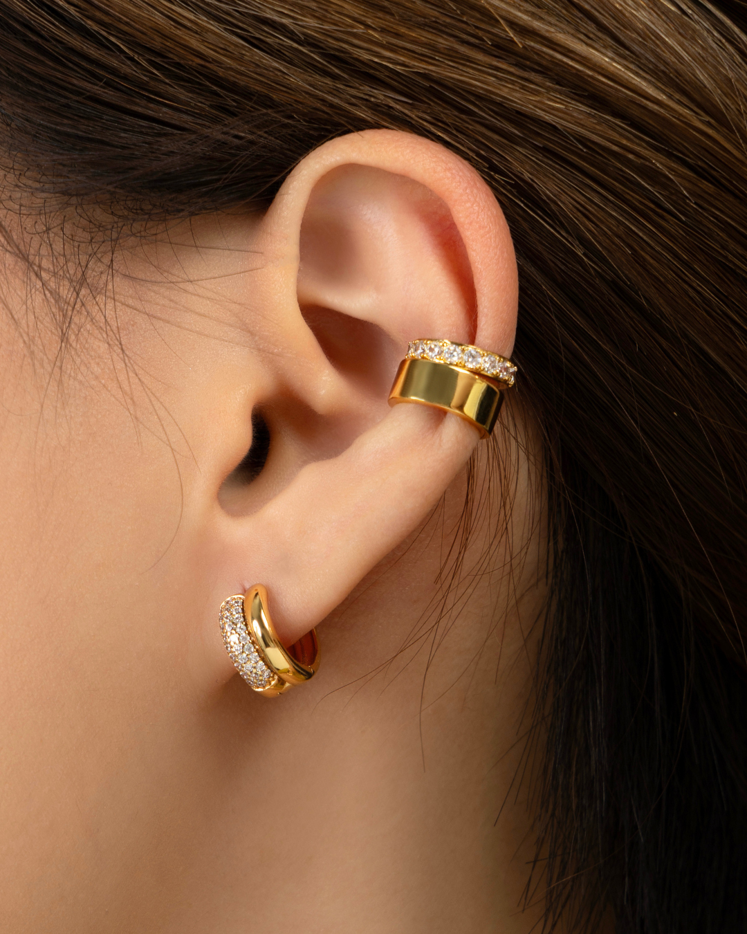 Luxe Duo Spark Crystal Gold Huggie Hoop Earrings