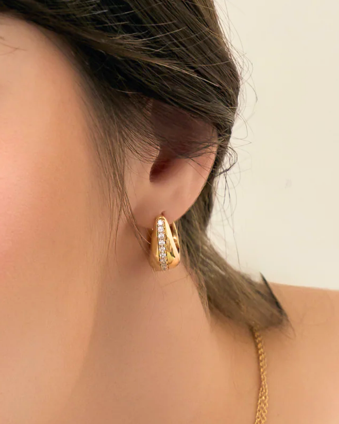 Luxe Clara Crystal Gold Huggie Hoop Earrings