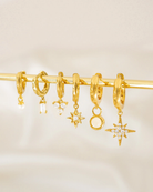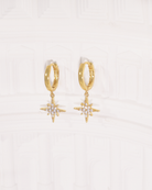 Celestial Full Starburst Crystal Gold Charm Huggie Hoop Earrings