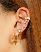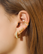 This crescent moon crystal stud brings lunar elegance to life, with a sleek curve of glistening stones that reflect serenity and strength in every glance.