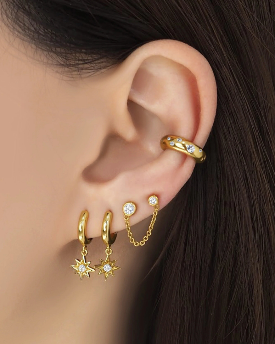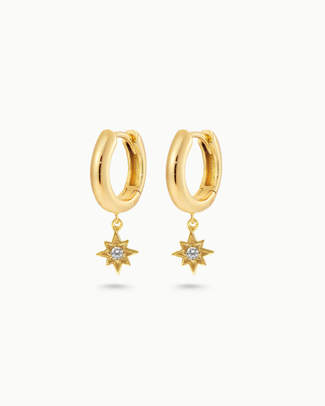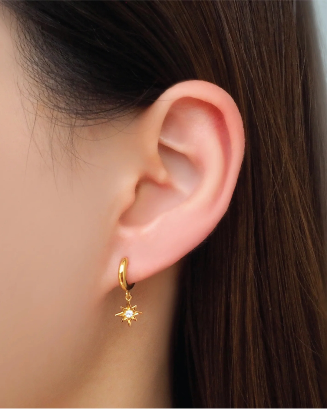 With a graceful shine and a refined star-shaped crystal charm, these hoops beautifully capture the dreamy glow of starlight, perfect for adding a magical touch to your look.
