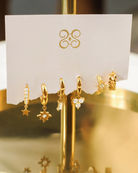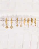 Celestial Star Crystal Gold Charm Huggie Hoop Earrings