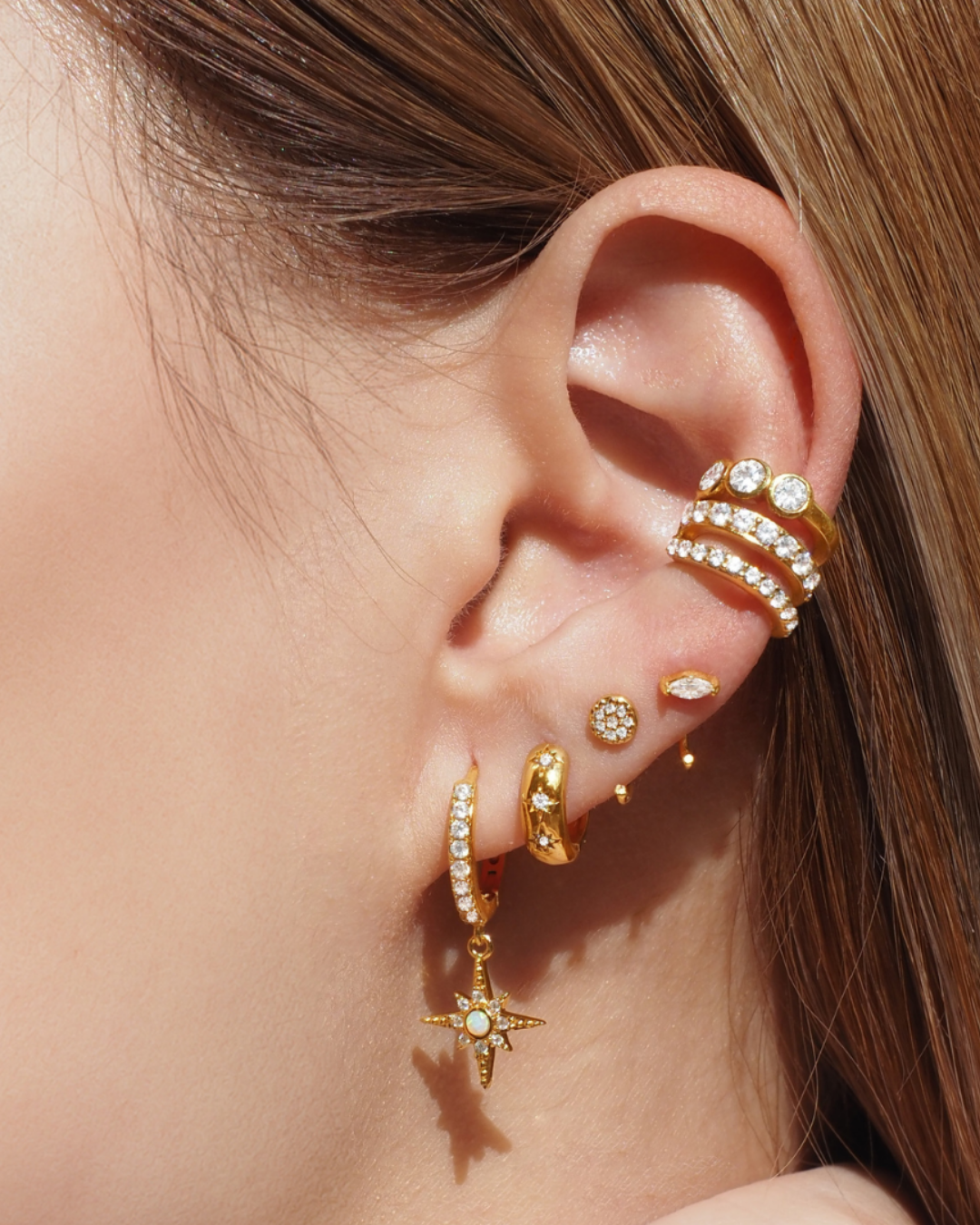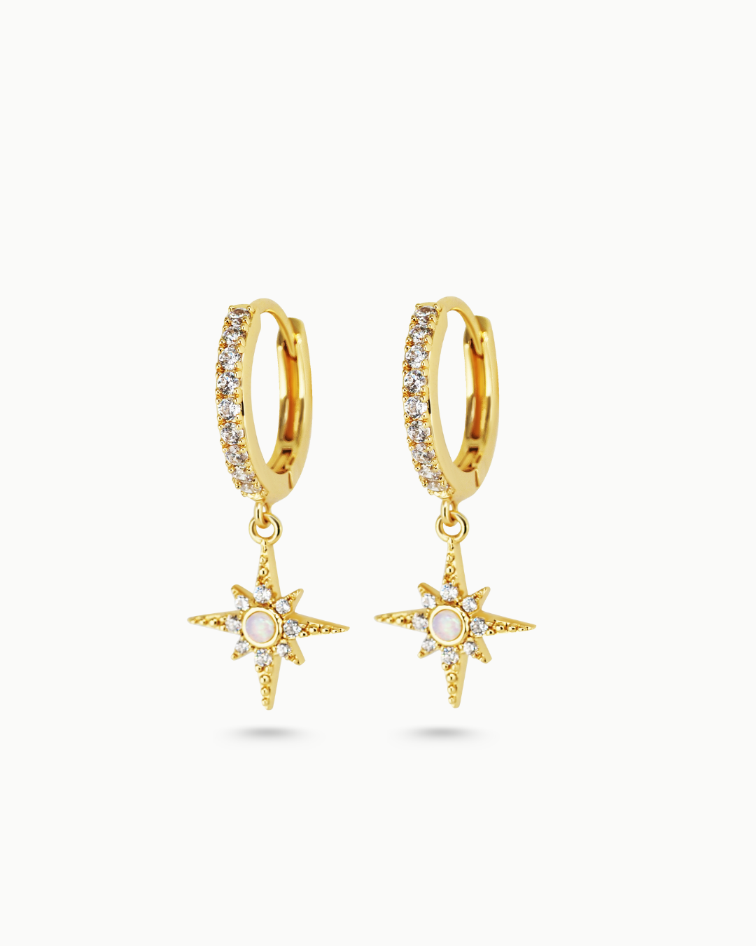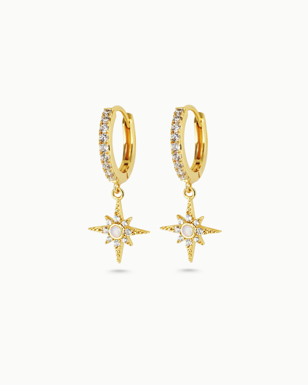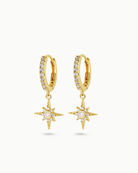 Celestial Starburst Crystal Gold Charm Huggie Hoop Earrings