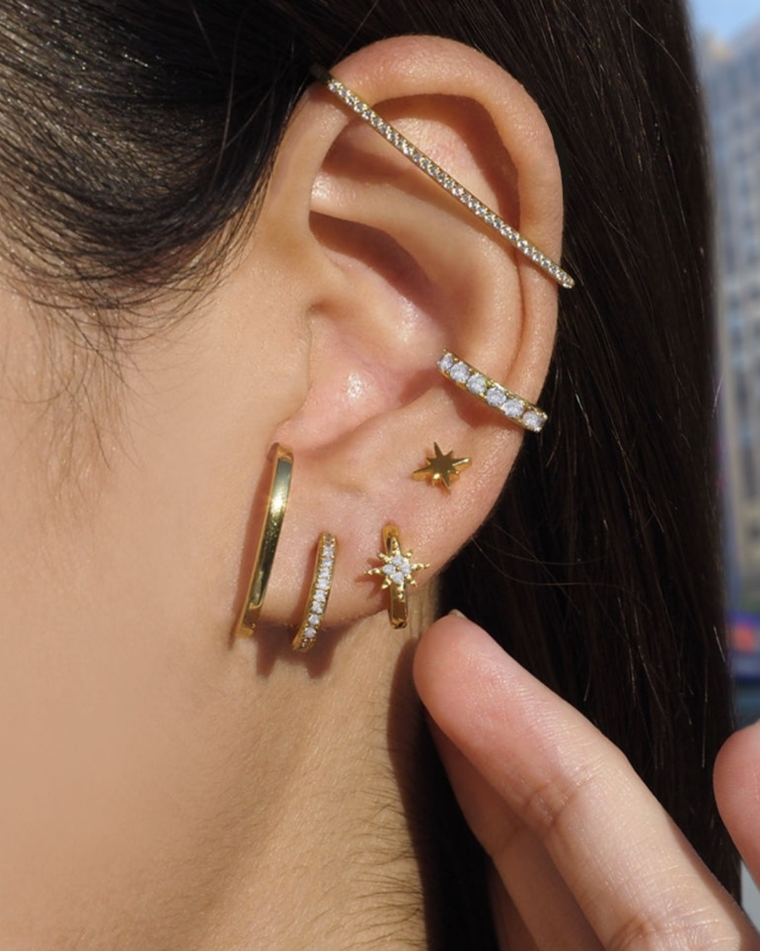 Celestial Starburst Crystal Gold Huggie Hoop Earrings