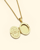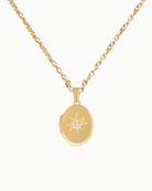 Celestial Starburst Locket Crystal Gold Charm Necklace