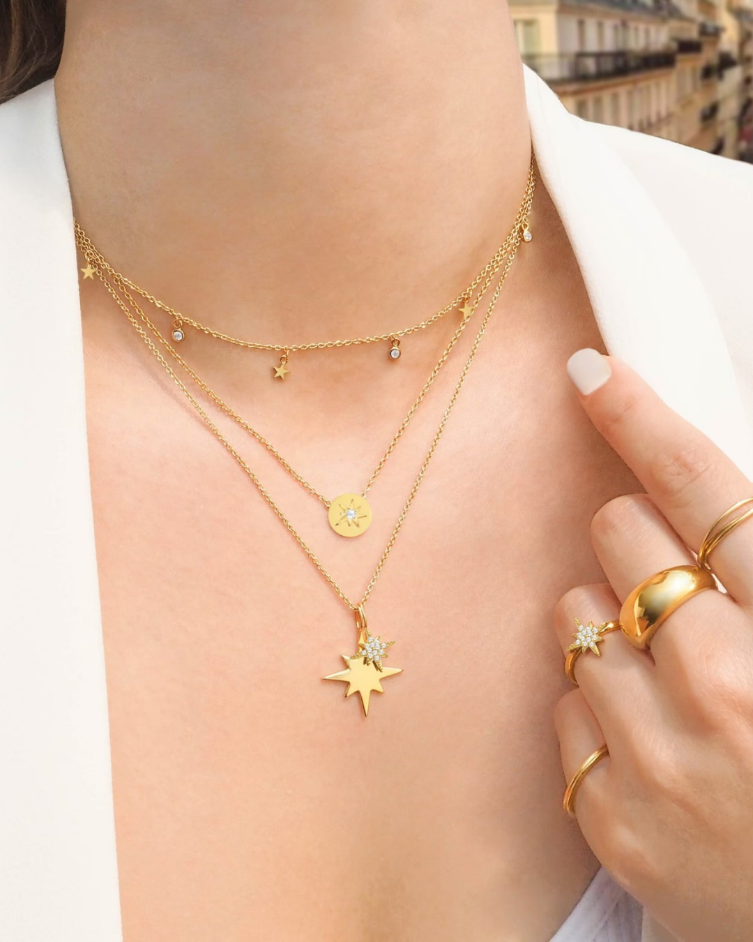 This choker celebrates your inner light with a bold central star surrounded by shimmering crystals. Designed to dazzle, it brings a spark of confidence and charm to any outfit.