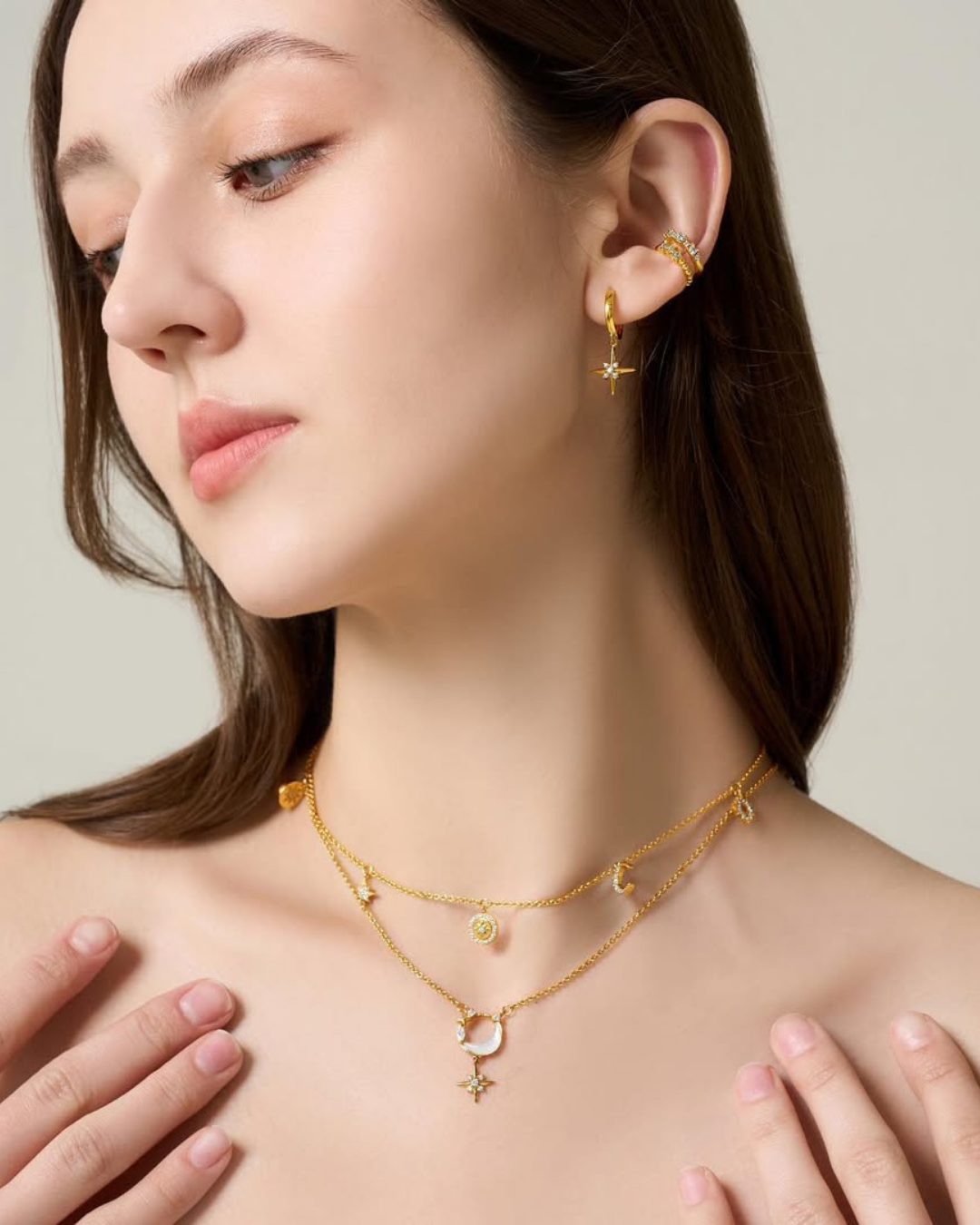 Celestial Vega Crystal Gold Charm Huggie Hoop Earrings