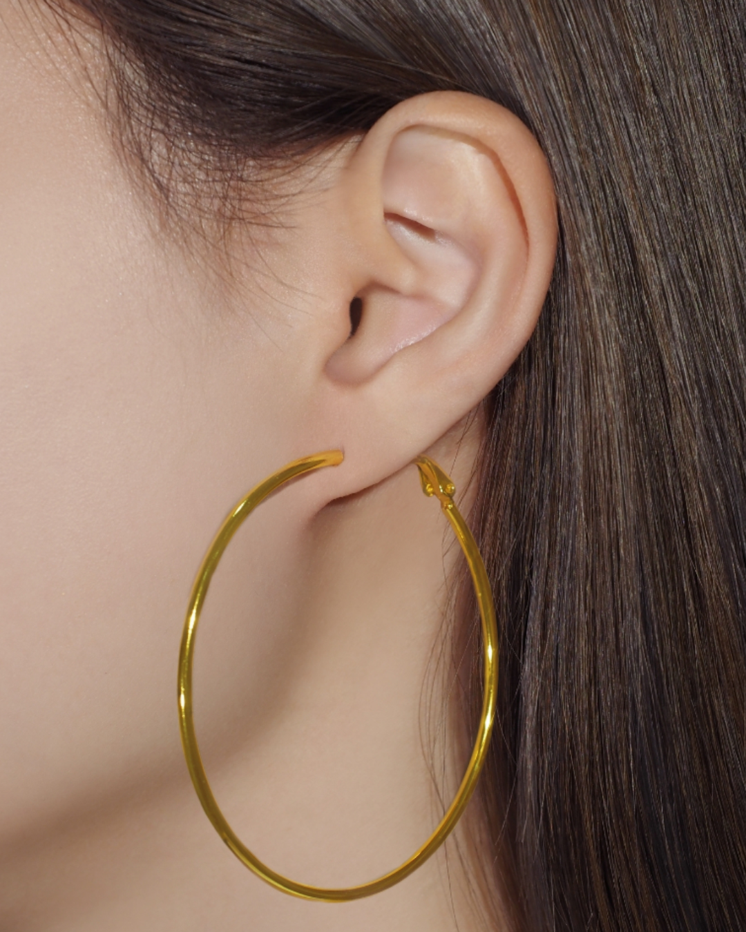 Elegant in scale and effortless in style, this 60mm hoop creates a striking silhouette while maintaining the brand's signature minimal charm.