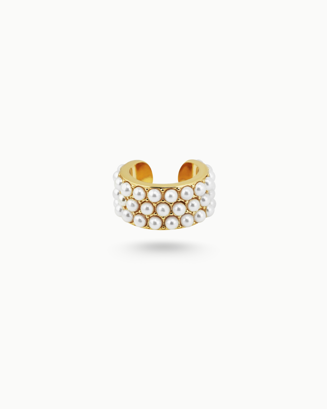 Timeless and elegant, this classic triple-pearl cuff slips on with ease and brings a soft vintage glow to your modern ear stack.