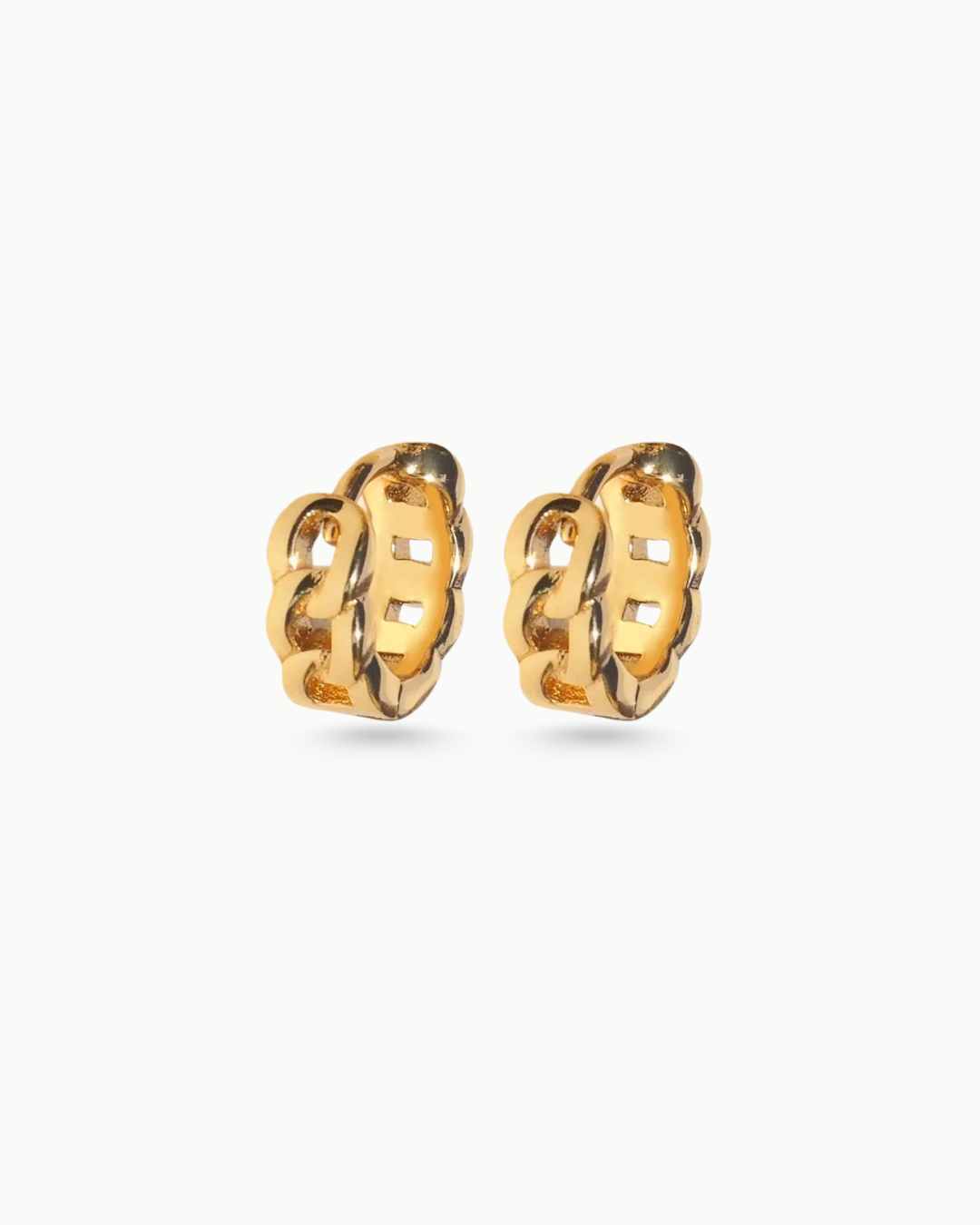 These sleek huggie hoops feature a delicate chain-like detail that brings a touch of modern charm, ideal for a clean, stylish look you can wear anytime.