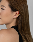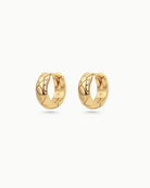 Blending braided texture with a compact design, the Cross Braid Huggie brings a modern twist to a traditional motif.