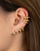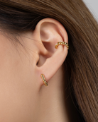 Featuring fine etched lines that reflect light beautifully, the Raya huggie hoop brings subtle texture and modern flair to a classic design.