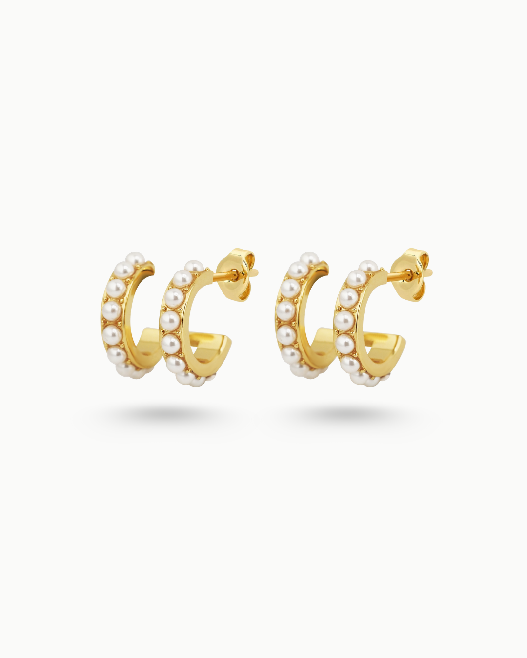 Softly elegant and quietly powerful, these double bar studs are paired with luminous pearls to bring a graceful contrast of modern form and timeless femininity.