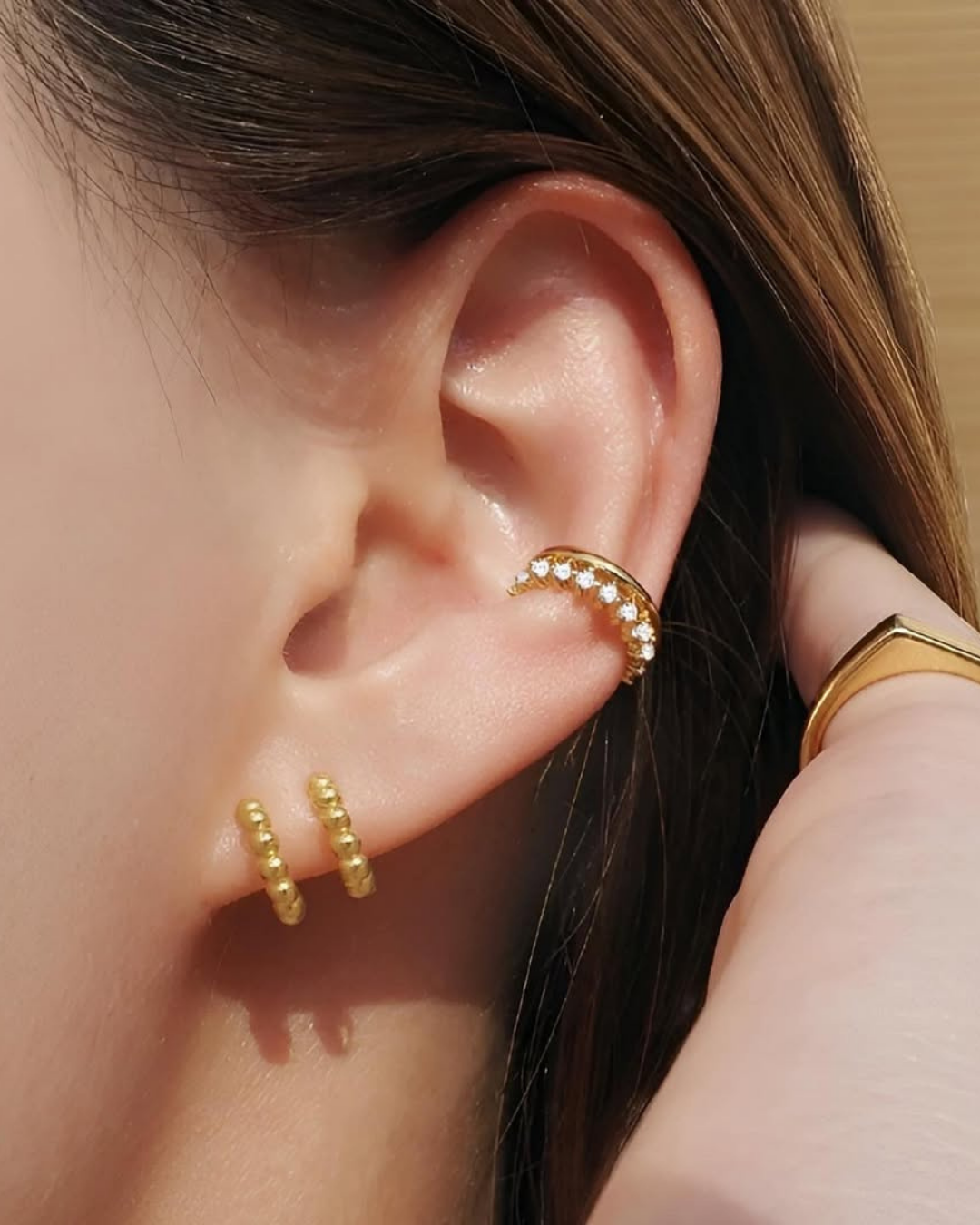 Minimal yet striking, these caviar-textured double bar studs bring a touch of quiet luxury to your look with their refined finish and modern structure.