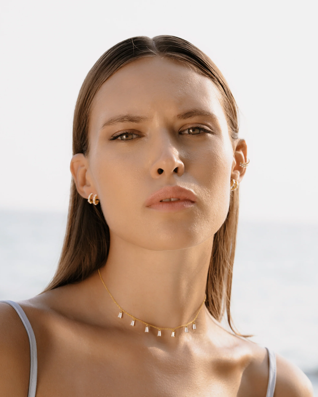 Featuring delicate baguette-cut crystals set in polished double bars, these studs combine clean lines with timeless brilliance for a fresh yet classic finish.