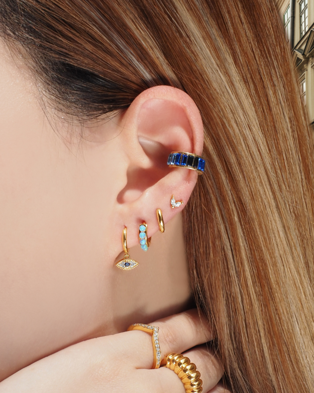 Designed to protect and inspire, these crystal charm huggies feature the iconic evil eye symbol, offering a timeless blend of luck, style, and subtle sparkle.