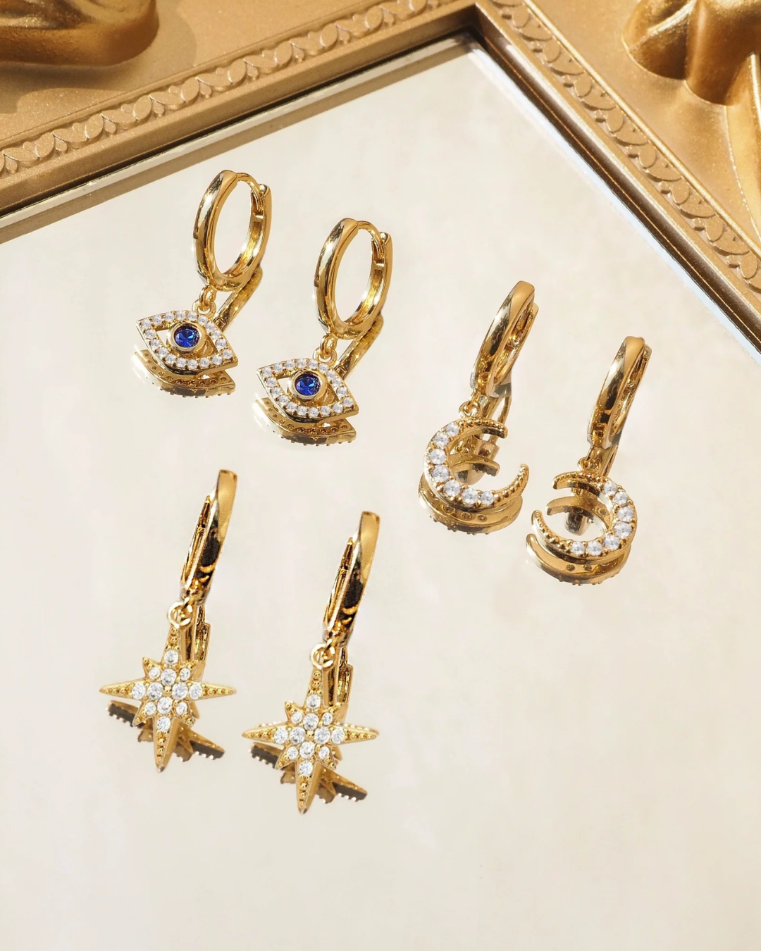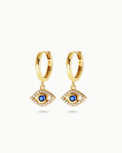 Lucky Evil Eye Crystal Gold Charm Huggie Hoop Earrings