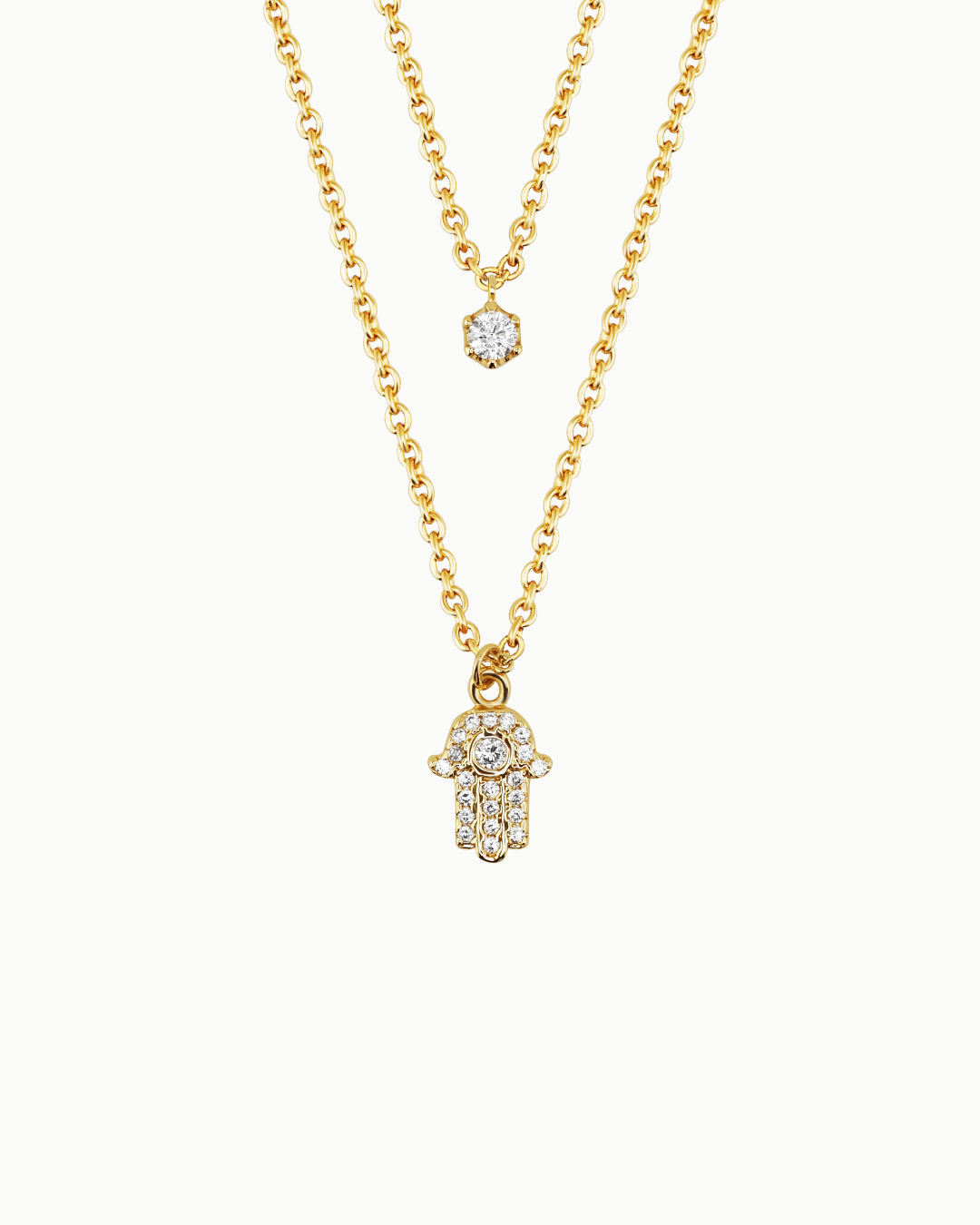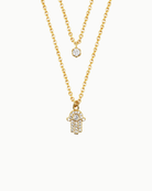 Lucky Hamsa Hand Bezel Crystal Gold Multilayer Necklace
