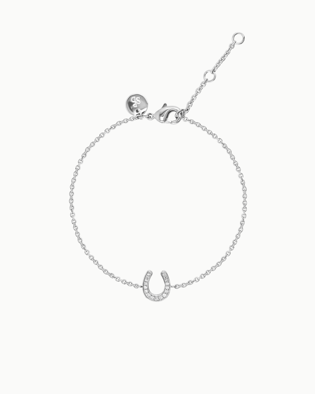 A delicate charm bracelet featuring a polished horseshoe charm accented with radiant crystals — a timeless symbol of luck and protection.