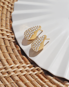 Inspired by drops of water, these earrings feature aqua-hued crystals that shimmer like the sea under sunlight.