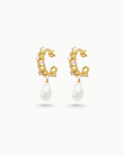 Luxe Bella Chain Freshwater Pearl Gold Hoop Stud Earrings