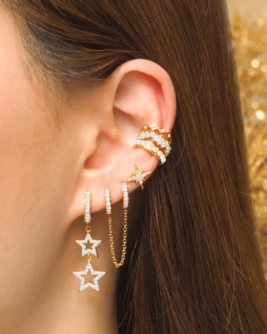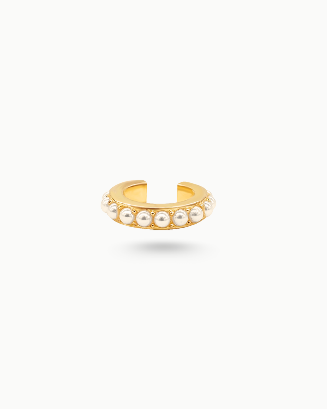 A romantic swirl of elegance, this cuff features luminous pearls set on a sleek band that hugs the ear with soft, graceful charm.