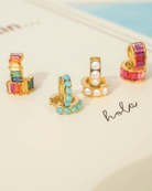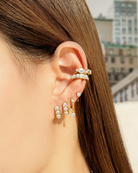A fusion of sparkle and grace, these huggies pair luminous pearls with a glimmering hoop design for a look that’s both refined and romantic.