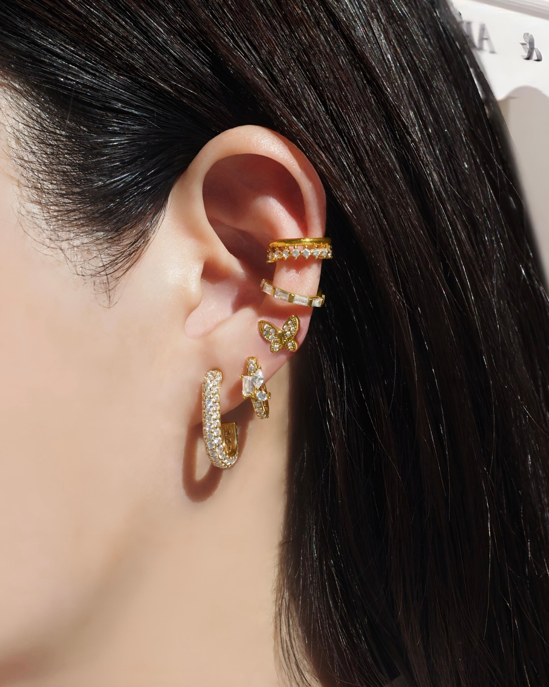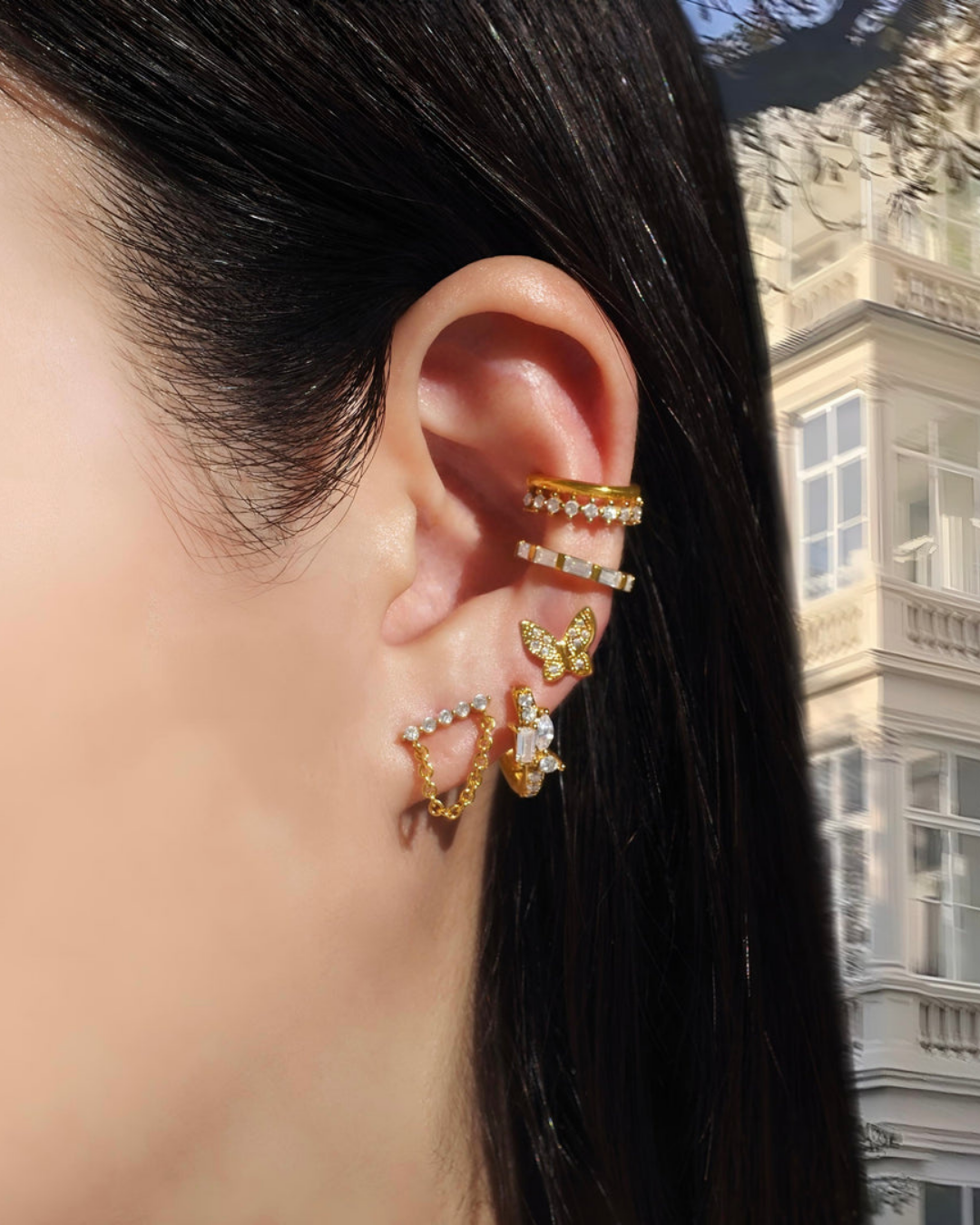 A whimsical take on nature’s beauty, these butterfly wing hoops are adorned with crystals that flutter and shine from every angle.