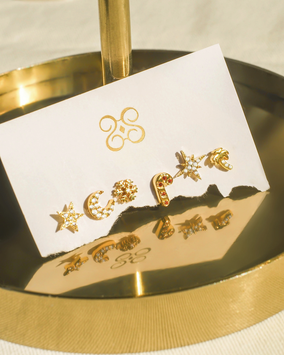With sweet stripes and festive charm, these whimsical crystal studs are perfect for the holiday season and beyond.