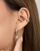 Luxe Clara Baguette Crystal Gold Charm Huggie Hoop Earrings