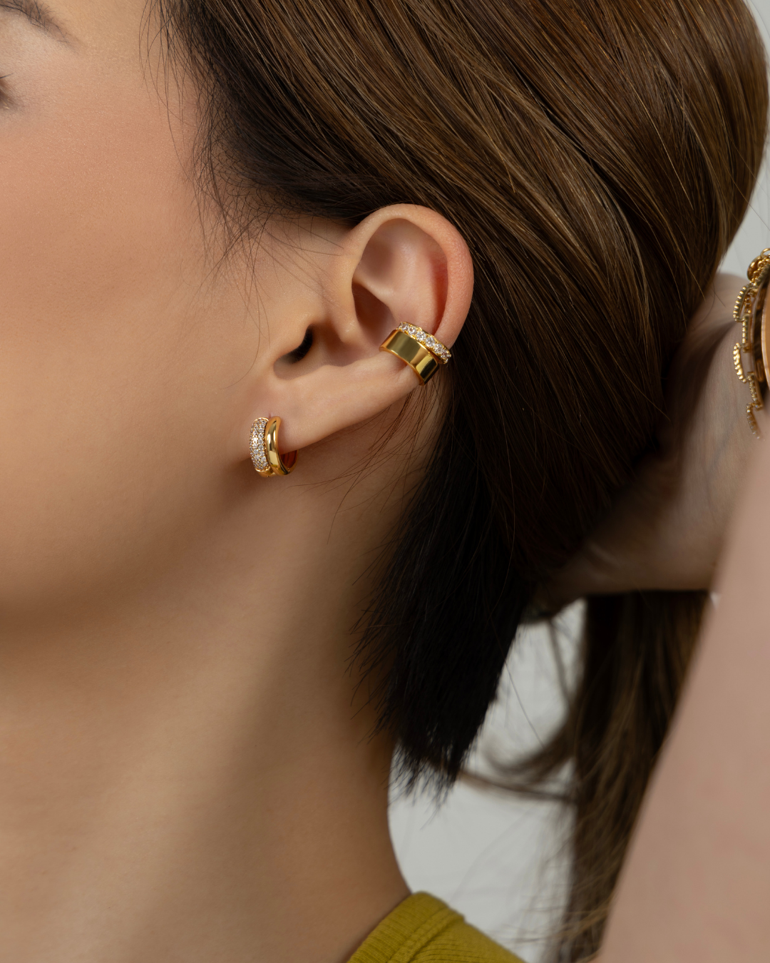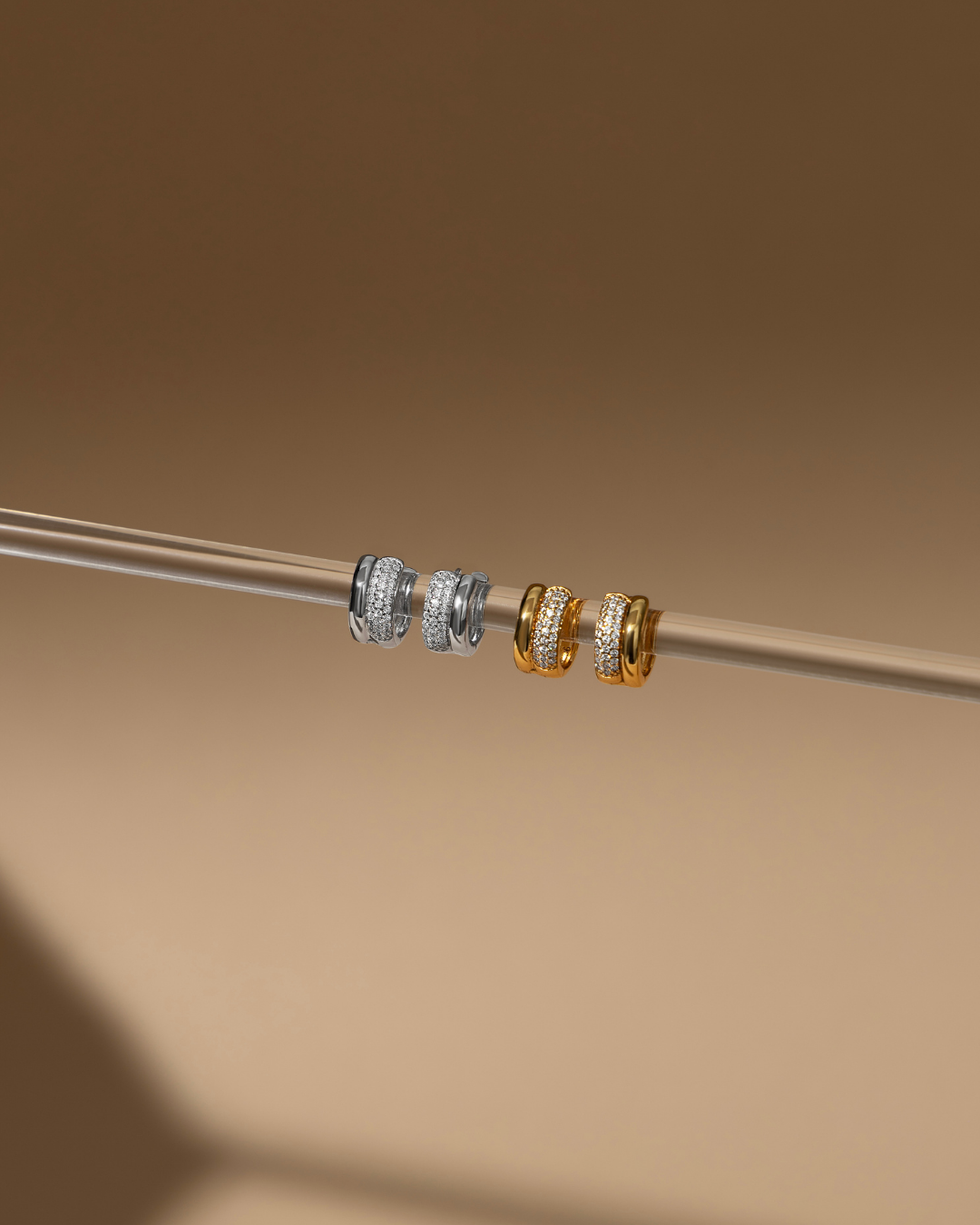 A refined choice for elevated everyday wear, these hoops feature a graceful silhouette and delicate crystal accents that shine softly.