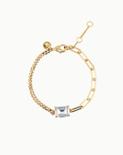 Fit for royalty, this bracelet features a mix of crystal cuts and chain styles for added dimension. It brings a fresh spin to timeless glamour, elegant yet wearable.