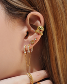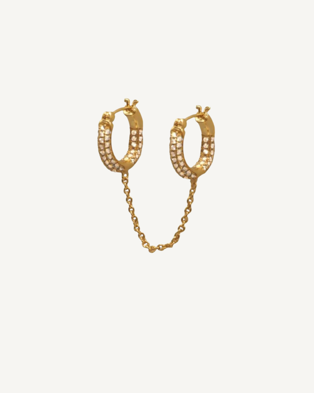 Luxe Double Link Chain Crystal Gold Huggie Hoop Earrings