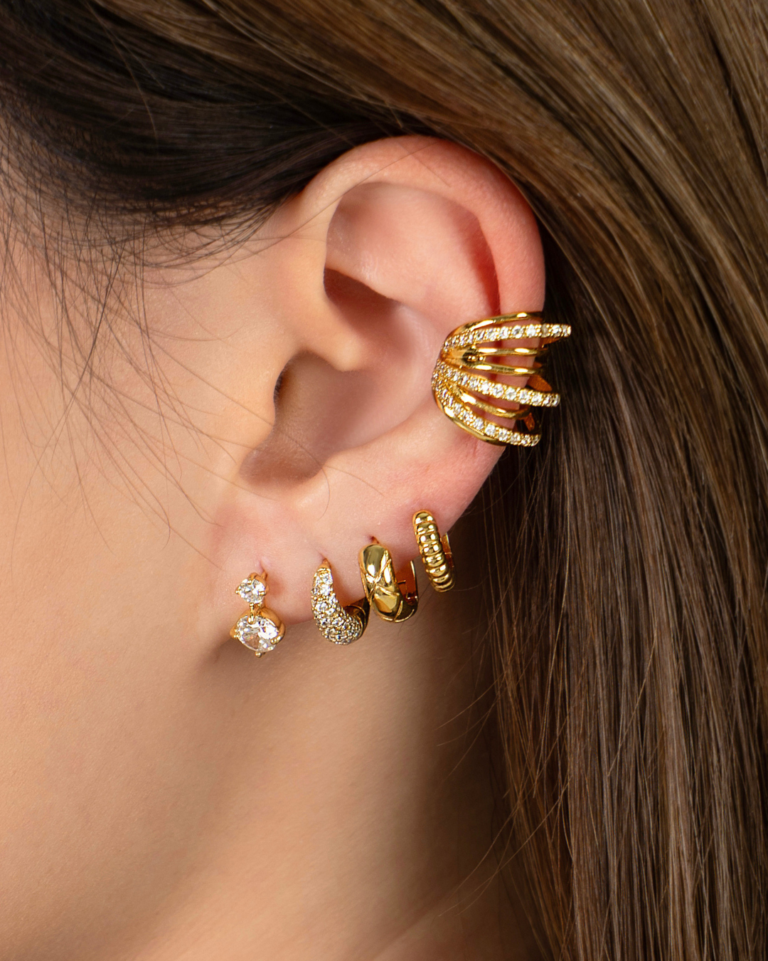 These dainty yet impactful huggies are lined with shimmering crystals, adding a subtle glow to your everyday stack.