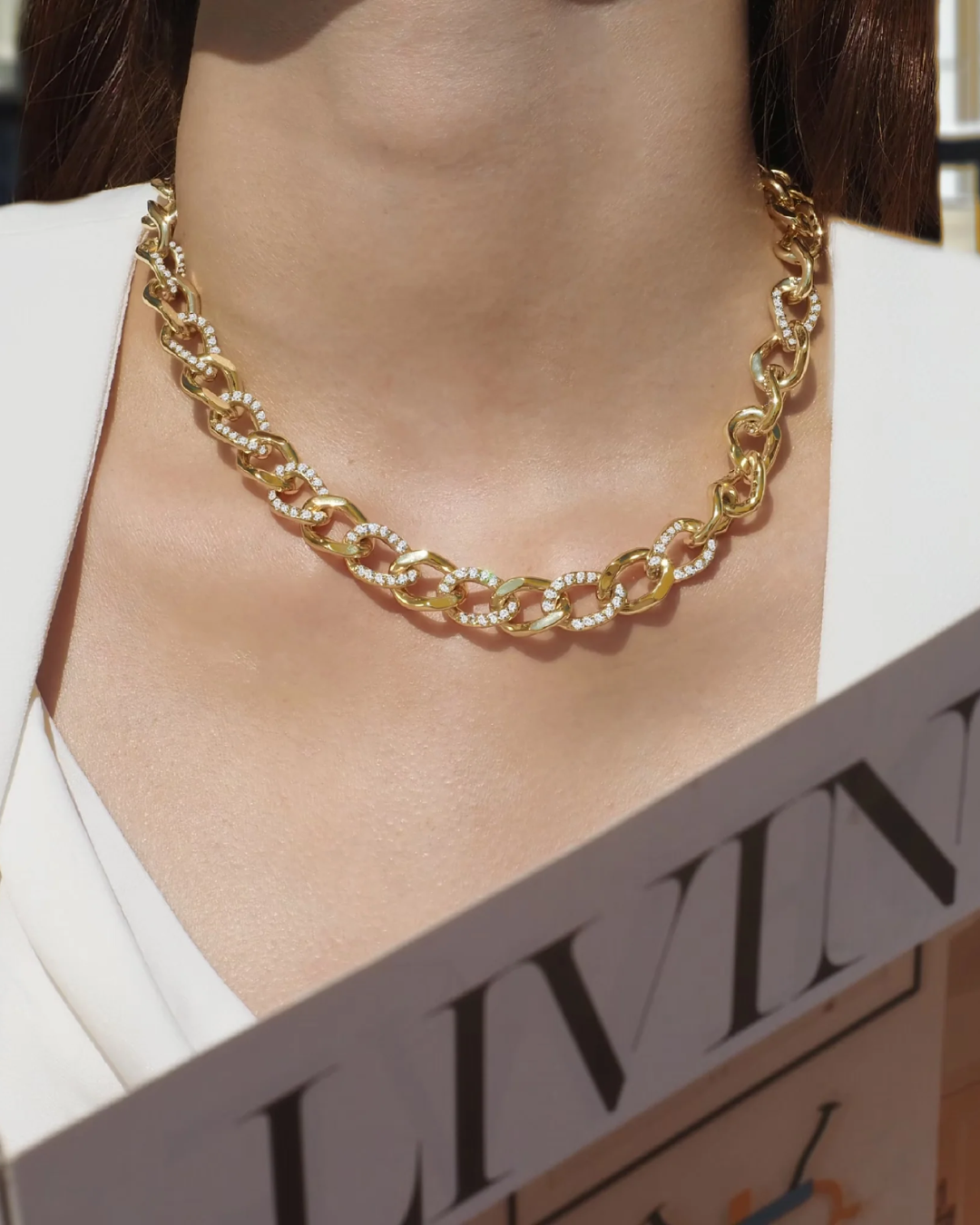 Luxe Elle Crystal Gold Chain Choker Necklace