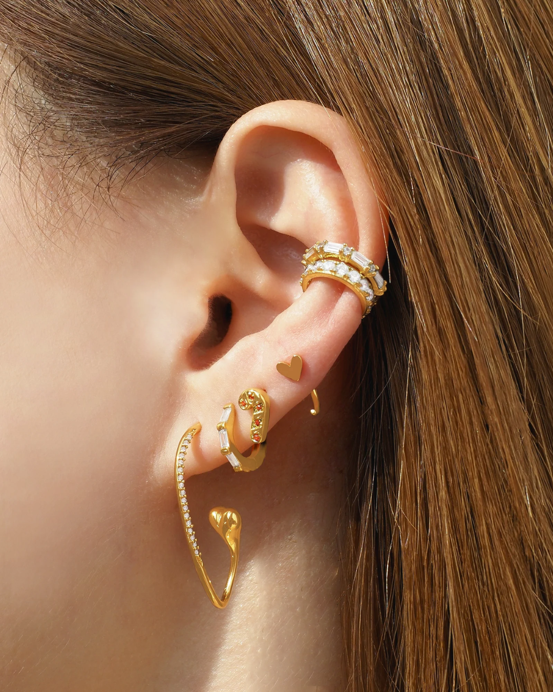 These cute earrings have tiny heart shapes that gently follow the curve of your ear. They are small, light, and easy to wear every day.