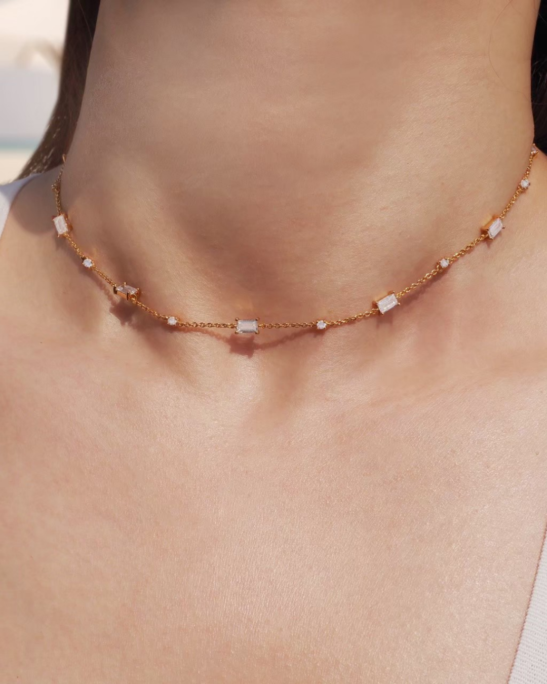 Luxe Lora Baguette Crystal Gold Choker Necklace
