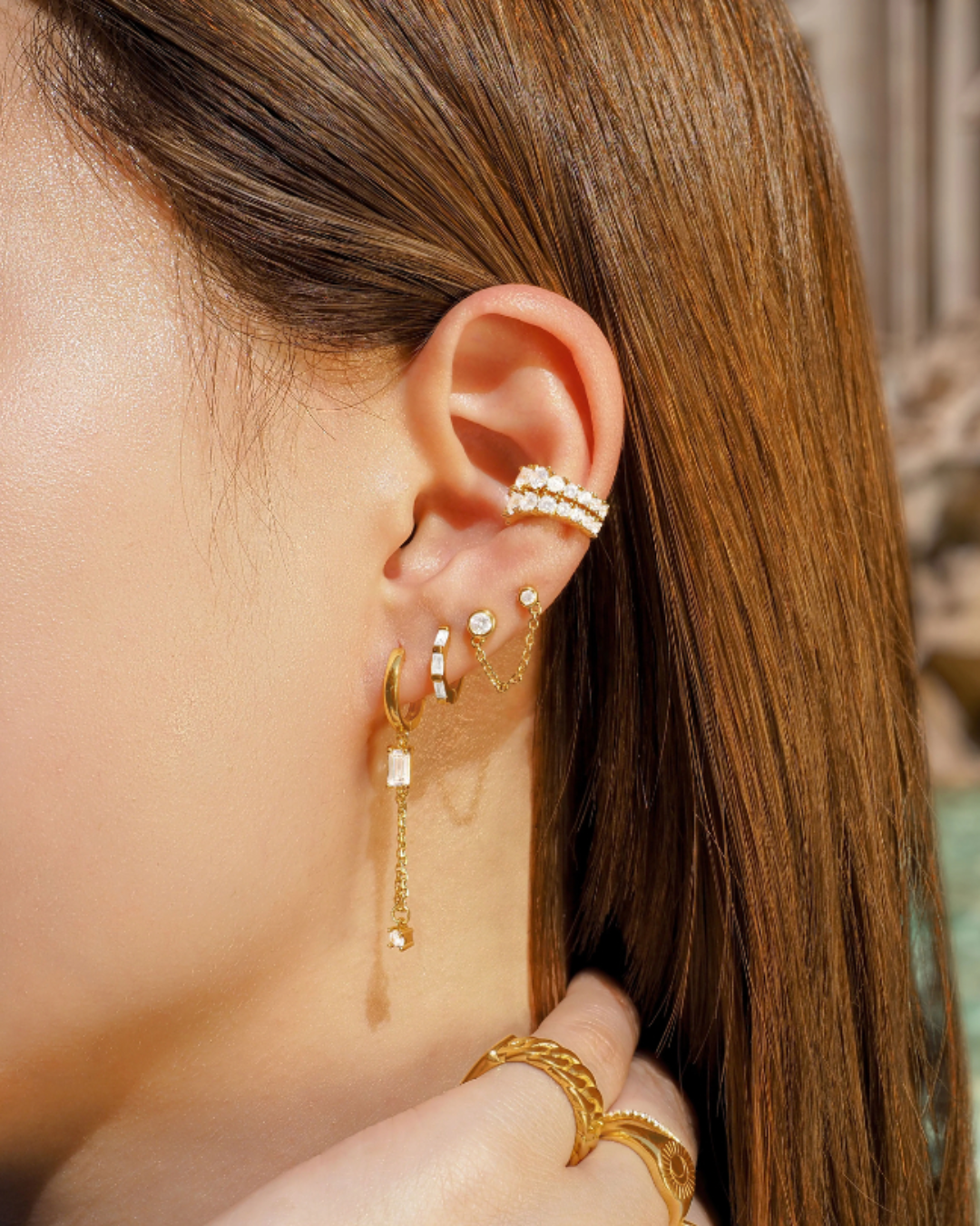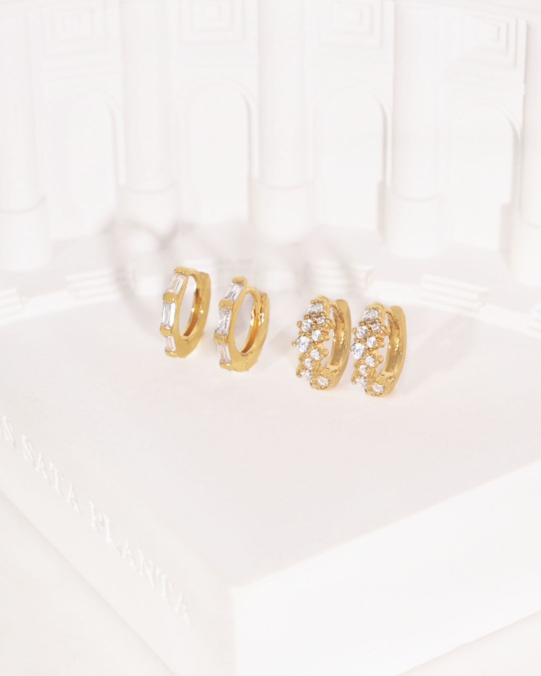 A modern classic, these huggies feature sleek baguette-cut crystals that reflect light with every turn, ideal for a clean, sophisticated finish.