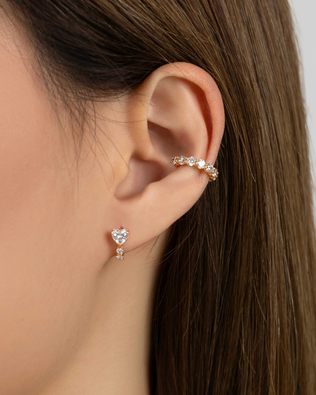 Add a luminous glow to your look with these heart-shaped crystal huggies that exude warmth, softness, and understated elegance.