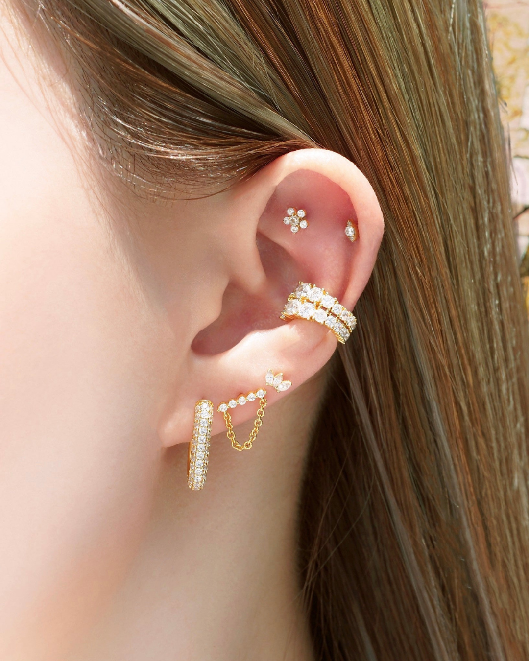 Small but full of attitude, these curved chain crystal studs lend a fluid, fashionable look to your everyday edit.