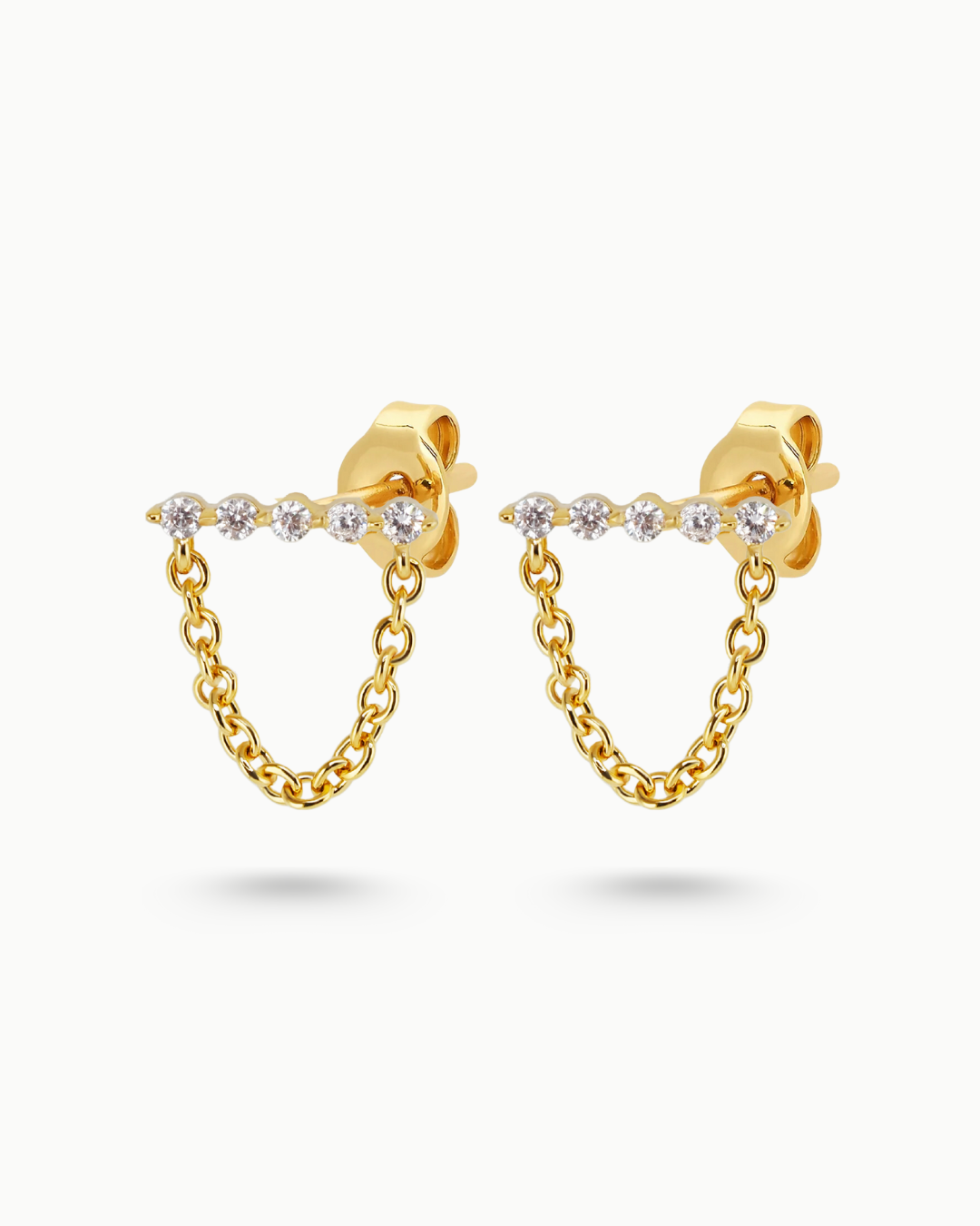 Luxe Mini Curve Chain Crystal Gold Stud Earrings