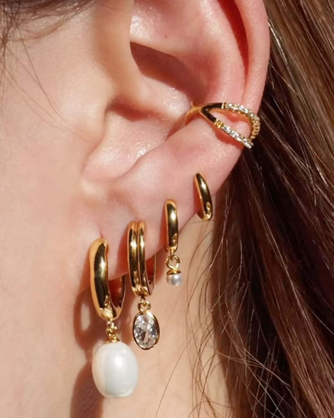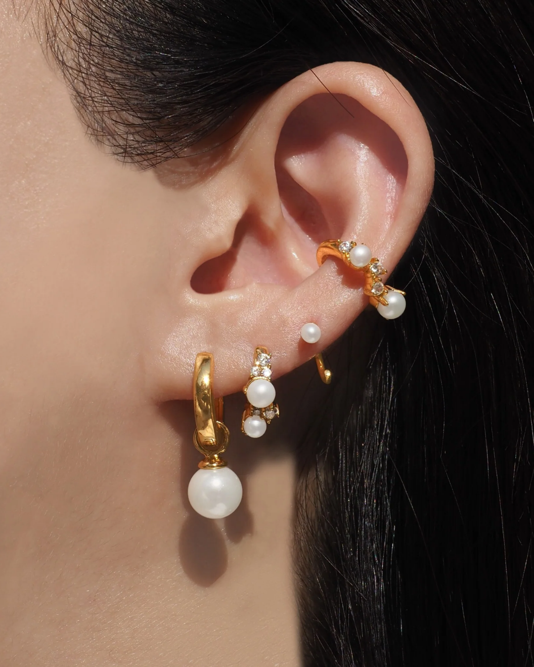 Luxe Mira Pearl Gold Charm Huggie Hoop Earrings