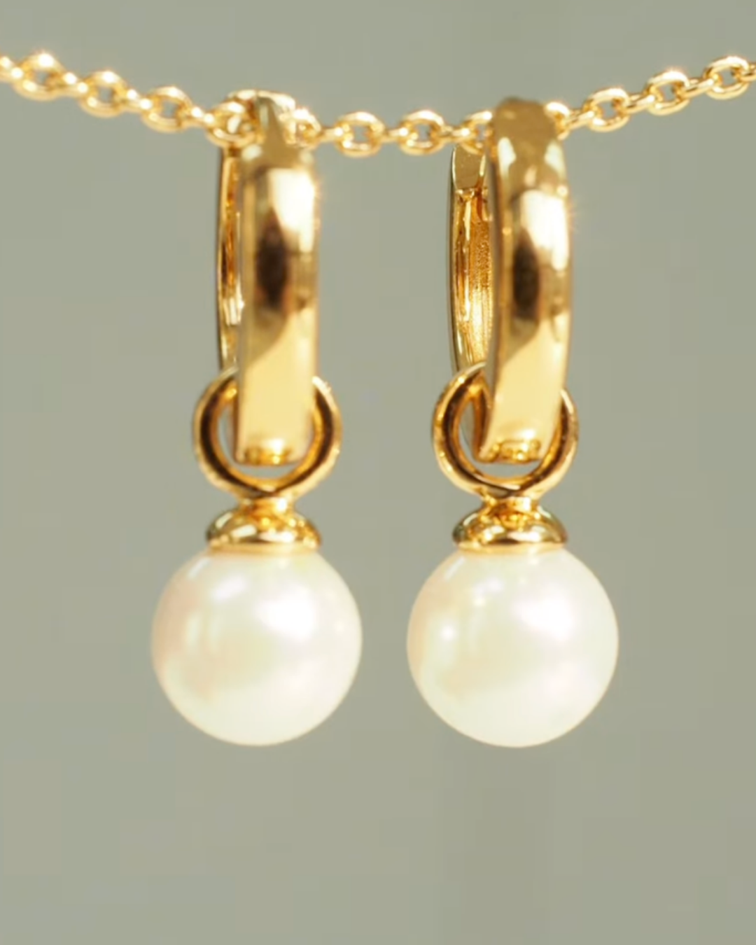 A dainty freshwater pearl charm dangles from each polished hoop, giving these earrings a timeless, graceful feel that pairs beautifully with both casual and formal looks.