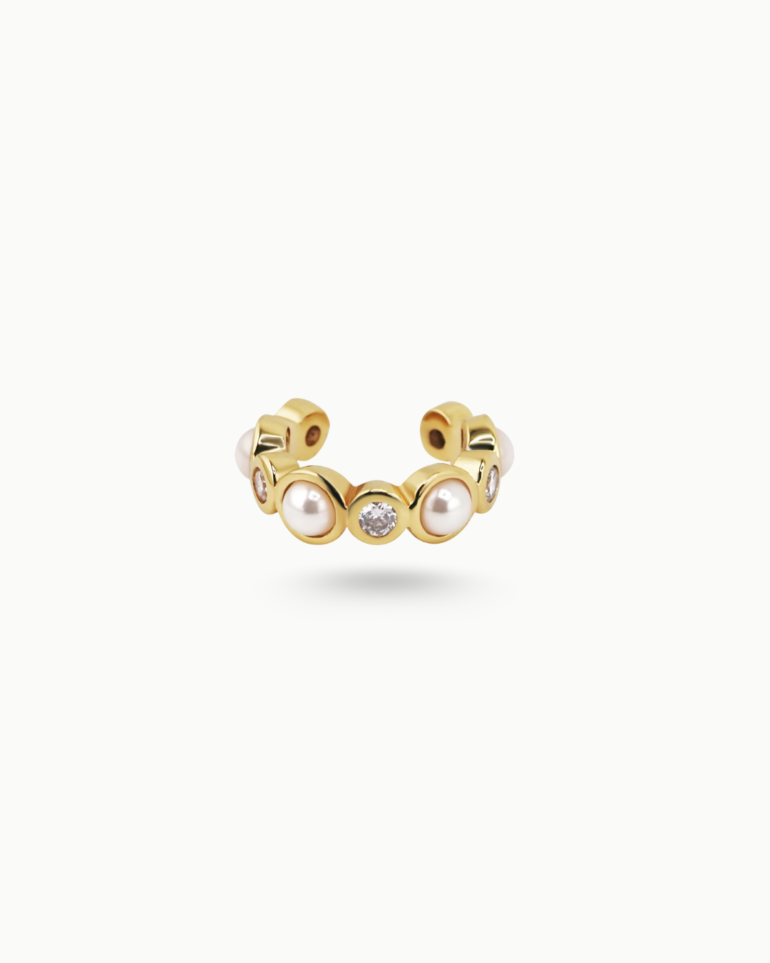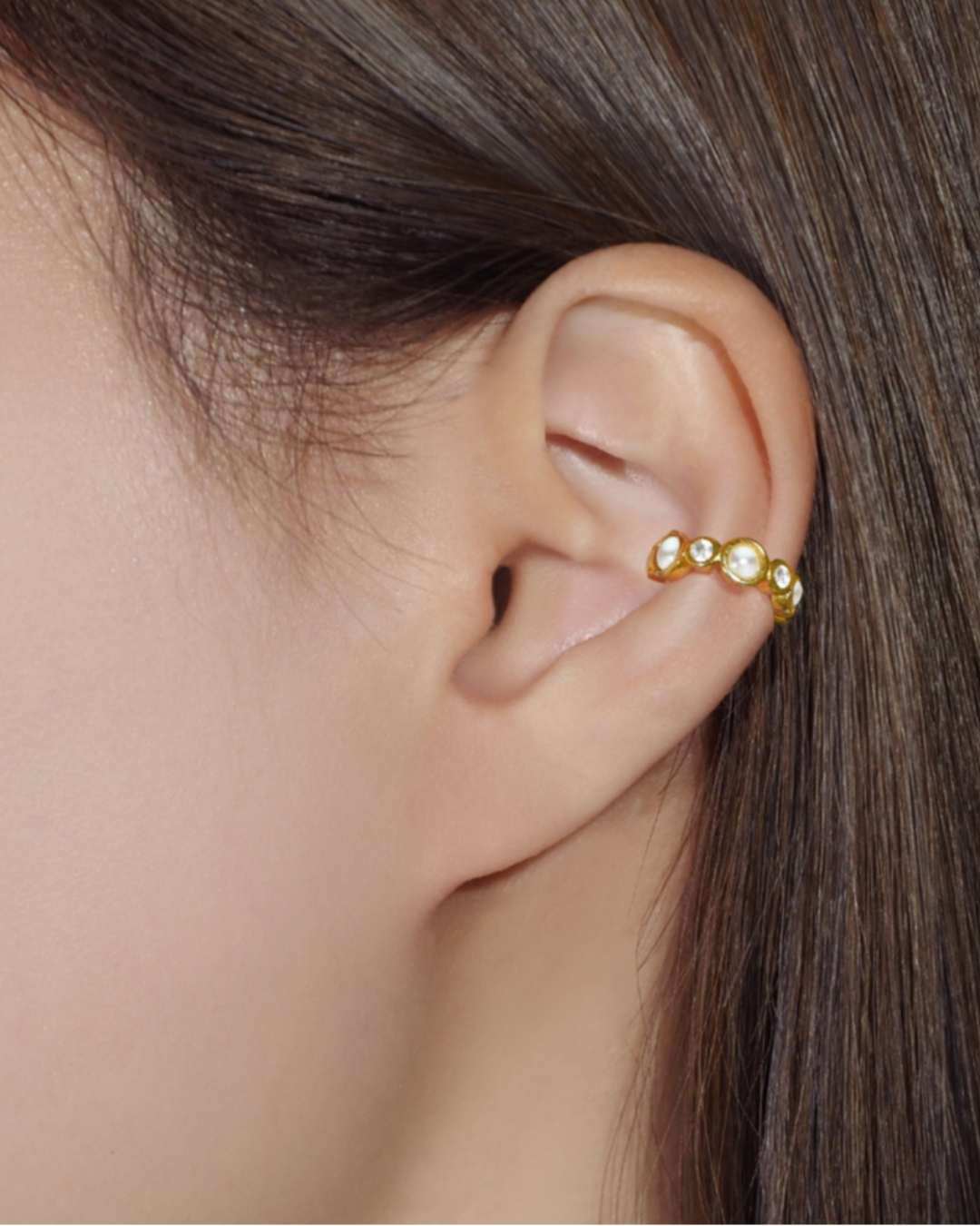 A fresh take on classic pearls, this cuff slides on with ease and brings an air of softness to bold ear combinations.