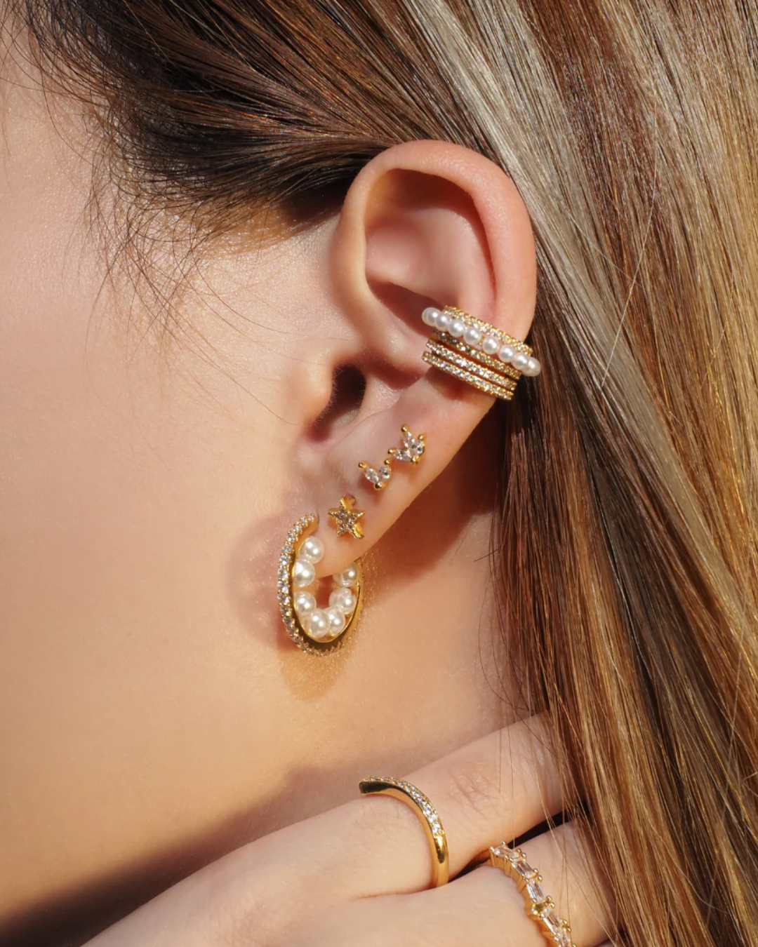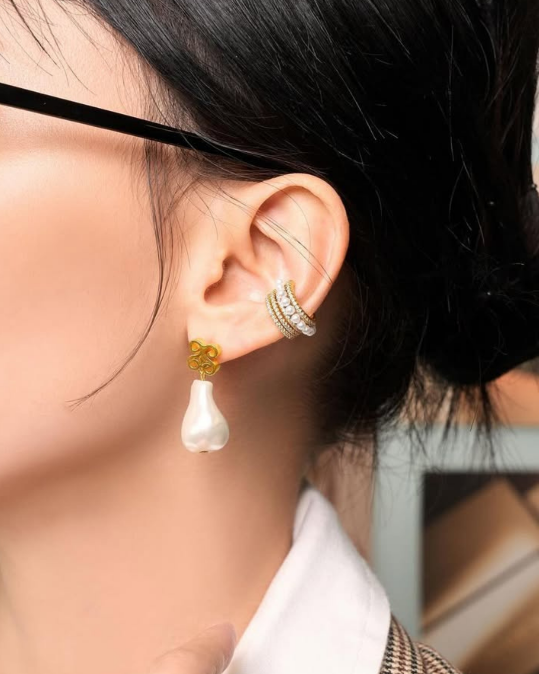 Luxe Ocean Wave Pearl Gold Ear Cuff