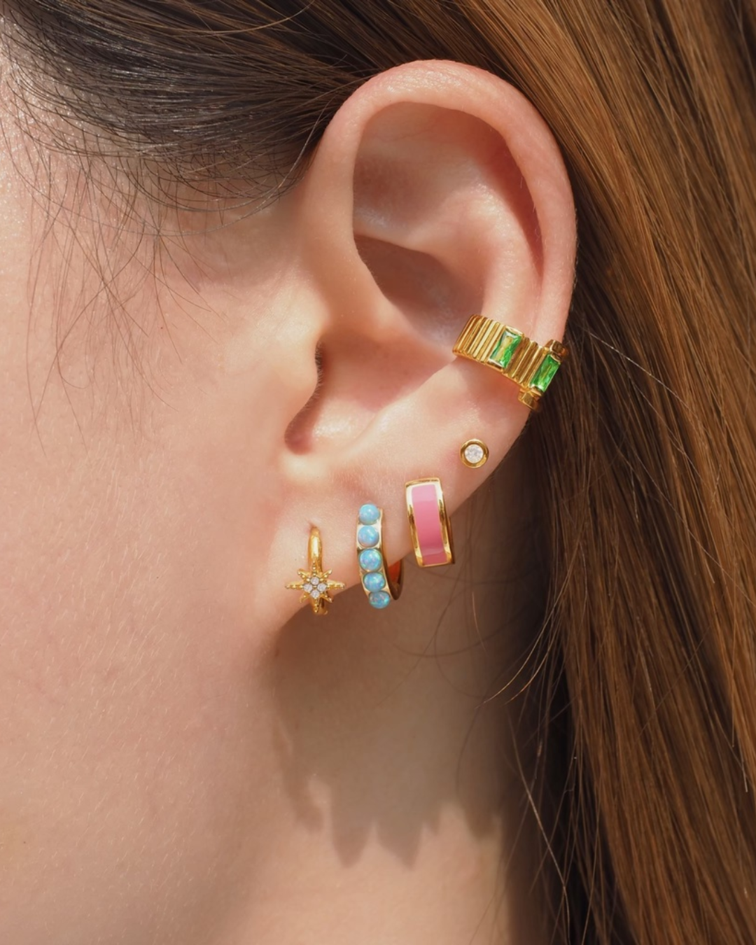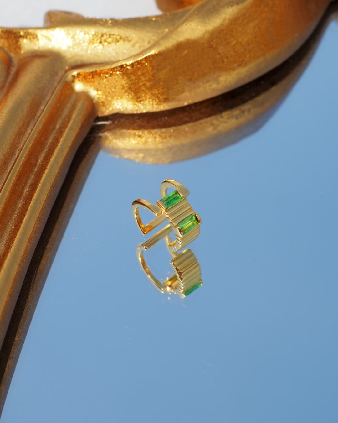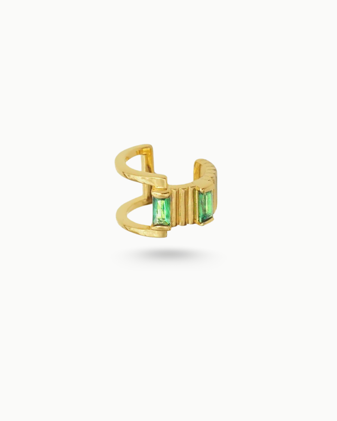 "Add a pop of color to your look with this playful green crystal ear cuff — fun, fresh, and ideal for mixing and matching with your other favorites.