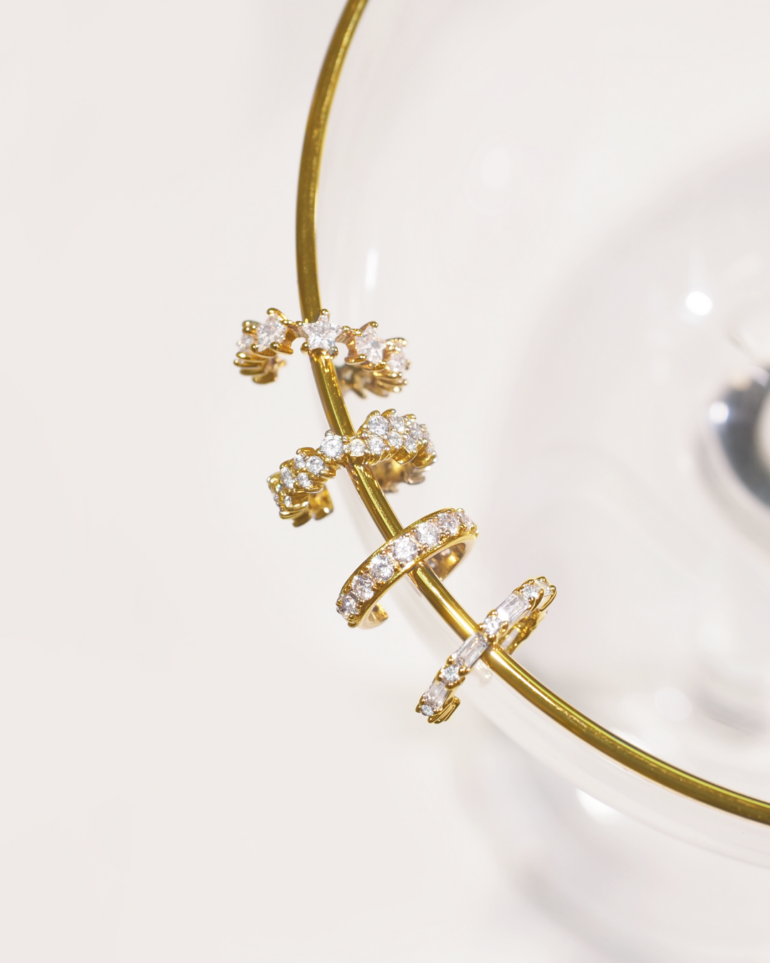 A radiant crystal ear cuff that brings effortless elegance to your look, catching light from every angle for an instant glow-up moment.
