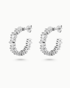 Shimmering baguette crystals line these bold hoops, giving your look a polished, runway-inspired finish.
