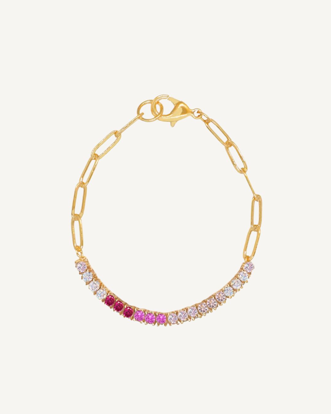 Luxe Tyra Pink Ombre Crystal Gold Chain Bracelet